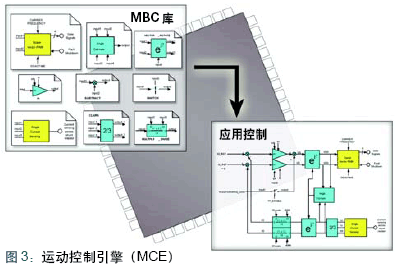 無傳感器磁場定向控制算法能夠以全新的控制器體系結構實現(xiàn)。圖2中所示控制系統(tǒng)的每個功能都可以用硬件宏模塊實現(xiàn),而不是軟件。諸如比例積分控制、矢量旋轉和Clarke變換等功能可共用于所有交流電機控制系統(tǒng)。如圖3所示,運動控制引擎(Motion Control Engine)庫中包含交流電機控制模塊和其它通用模塊。獲取電機控制芯片,就能夠取得MCE庫,以及模擬輸入和空間矢量PWM控制等功能。開發(fā)人員可以使用圖形工具將元件從MCE庫拖入自己的控制系統(tǒng)設計,然后利用圖形編譯器將控制設計翻譯為MCE序列指令,以正確順序連接硬件宏模塊從而實現(xiàn)自己的控制系統(tǒng)。該方法可以不必在開發(fā)過程中進行軟件編碼,既能節(jié)省時間,又能減少錯誤。