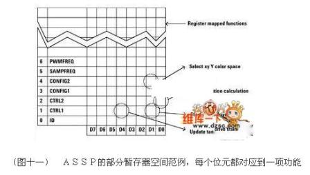 在普通情況下,ASSP只需支援被動(dòng)元件以及一個(gè)外部PROM來儲(chǔ)存調(diào)校資料。在大部分情況下,存儲(chǔ)器空間可以和系統(tǒng)及周邊共用,因?yàn)檎{(diào)校資料僅需31bytes。