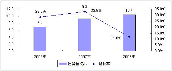 • 2008年,中國(guó)中小尺寸液晶面板共出貨10.4億片,同比增長(zhǎng)11.8%