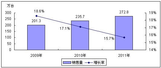 圖1 2009-2011年中國數(shù)碼攝像機銷售量預測
