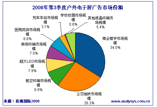 - 2008年第3季度戶外電子屏廣告市場(chǎng)收入同比增長(zhǎng)53.5%