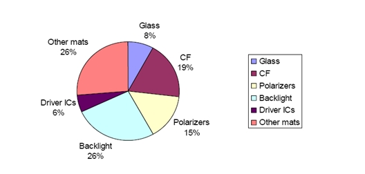 其中背光源的25%成本是基于CCFL的數(shù)據(jù),如果采用LED作為背光源,它所占的成本將大大超過這個(gè)比例,大約要占到50%的成本。采用場順序制以后,拿掉了濾色片就相當(dāng)于發(fā)光效率提高了70%,這是非??捎^的。這意味著LED的數(shù)量可以減少70%,LED的成本就可以減少70%。而且LED數(shù)量減少70%以后,其發(fā)熱量可以減少70%,耗電也可以減少70%。