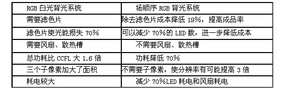 不過,也只有采用場順序以后才能使得LED背光實(shí)現(xiàn)商業(yè)化,也才能夠真正和CCLF競爭。