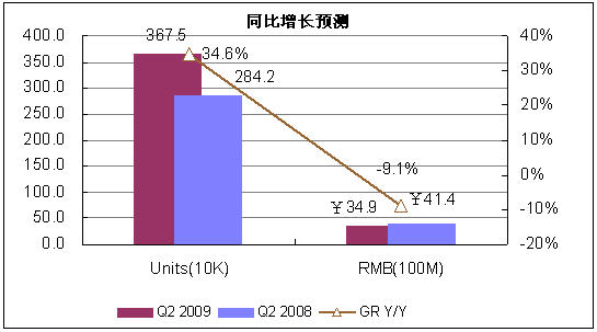 2009年第二季度,由于市場淡季來臨,需求動力不足。賽迪顧問預(yù)測,第二季度市場銷量為367.5萬臺。