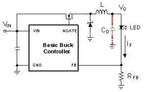 鑒于LED的動態(tài)調(diào)光特性好,在設(shè)計的時候要考慮使這種特性能夠方便應(yīng)用。幸運(yùn)的是,基本降壓開關(guān)電路在實現(xiàn)這些特性的時候表現(xiàn)的非常好,所以LED驅(qū)動一般選擇降壓型開關(guān)電源。