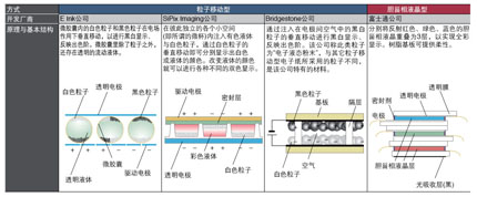 表1 已進(jìn)入實用化階段的主要電子紙技術(shù)的比較