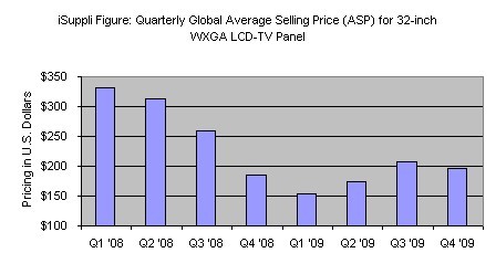 - 預(yù)計(jì)32英寸WXGA LCD電視面板第四季度的平均價(jià)格是196美元,比第三季度下降5.8%