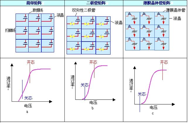 LCD從字符顯示器發(fā)展到圖像顯示器,已經(jīng)有30多年的歷史,它的技術(shù)一直在進步,技術(shù)性能也一直在提高,原來很多致命缺點現(xiàn)在已經(jīng)基本被克服,圖4就是各種矩陣液晶顯示器性能的比較。從圖4中可以看出,TFT-LCD是目前各種液晶顯示器中性能最好的。但TFT-LCD也存在很嚴重的缺點,就是背光燈損耗能量比較大,因為液晶本身不發(fā)光,而液晶的透光率比較低,背光系統(tǒng)的光損耗也很大,真正用于圖像顯示的光強度一般只有背光源的5%左右。