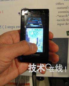 演示中使用了安裝有試制品、類似手機的小型影像顯示設備(圖1)。演示了用戶接觸觸摸面板的力度變化,導致畫面上顯示的圖標切換速度變化的情形。按壓力度越強,圖標的切換速度就越快。