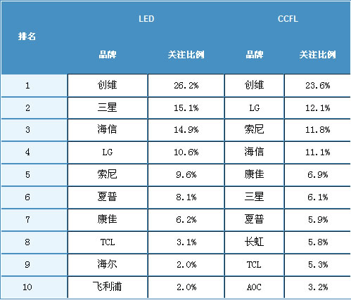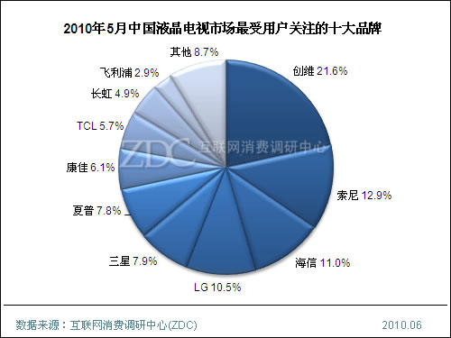 (圖)2010年5月中國(guó)液晶電視市場(chǎng)最受用戶關(guān)注的十大品牌