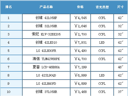 (圖)2010年5月中國(guó)液晶電視市場(chǎng)最受用戶關(guān)注的十款產(chǎn)品