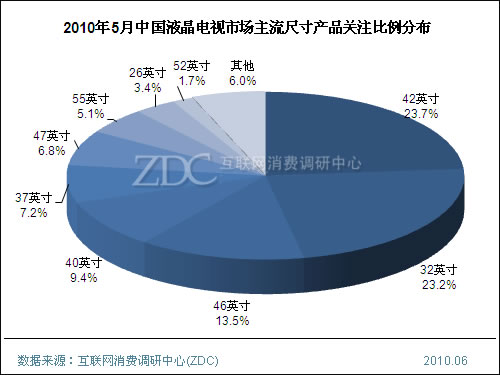 (圖)2010年5月中國(guó)液晶電視市場(chǎng)主流尺寸產(chǎn)品關(guān)注比例分布