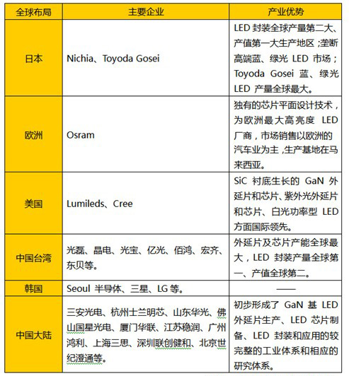 中國大陸和臺灣地區(qū)進入led產(chǎn)業(yè)較晚,led企業(yè)的資金實力、技術水平與歐、美、日企業(yè)有一定差距,因而多專注于產(chǎn)業(yè)鏈的某個環(huán)節(jié)、走專業(yè)化道路。隨著,中國大陸和臺灣地區(qū)企業(yè)在資金實力和技術水平的提升,目前在封裝領域,發(fā)光效率、顯色指數(shù)等主要指標方面國內(nèi)外已不存在明顯差距。