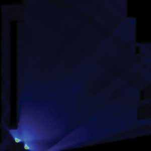 對于圖3中的例子,所用的是兩個側(cè)面發(fā)光高亮度LED器件,并使用經(jīng)過優(yōu)化的邊緣光源導(dǎo)光體進行光耦合。之后,為了確定系統(tǒng)中的自然光譜進行了基線光學(xué)建模。建模完成后,一個經(jīng)過定制的光學(xué)透鏡陣列被增加進來,以改善從LED器件發(fā)出的可以利用的光,并且將光的出射范圍擴展到比LED器件制造商原始設(shè)計更廣的地步。