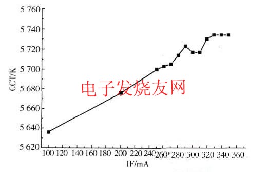 圖2相關(guān)色溫與正向電流的關(guān)系