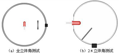 光通量的測(cè)試有兩種方法,即積分球法和變角光度計(jì)法。變角光度計(jì)法是測(cè)試光通量最精確的方法,但是由于其耗時(shí)較長,所以一般采用積分球法測(cè)試光通量。現(xiàn)有的積分球法測(cè)LED光通量中有兩種測(cè)試結(jié)構(gòu),一種是將被測(cè)LED放置在球心,另外一種是將其放在球壁。