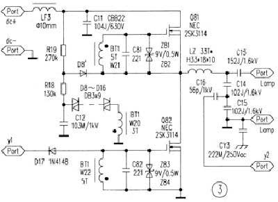 當(dāng)C12上所充電壓達(dá)到觸發(fā)管(DI-AC)D8~D16的轉(zhuǎn)折電壓時,DIAC由關(guān)斷轉(zhuǎn)為導(dǎo)通狀態(tài)。積分電容C12所儲存的電荷經(jīng)DIAC加于振蕩變壓器BT1的初級繞組W20,依靠W22、W21兩個繞組使Q81、Q82獲得幅度相等,相位相差180°的驅(qū)動信號。在Q82導(dǎo)通時Q81被強迫關(guān)斷截止;Q81導(dǎo)通時,Q82又被強迫關(guān)斷截止。