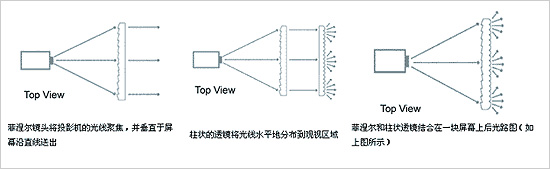 包含一個或多個光學(xué)鏡頭系統(tǒng)的投影屏幕稱為光學(xué)屏幕,在鏡頭里面,光線被折射,方向發(fā)生了改變,只有背投屏幕能控制光線的方向,故只有背投屏幕才有光學(xué)屏幕。光線的方向取決于投影屏幕材料的折射系數(shù)及鏡頭的剖面形狀。