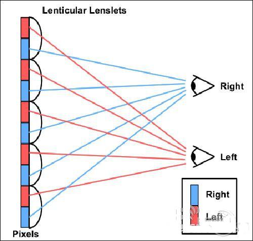 柱狀透鏡(LenticularLens)技術(shù)也被稱為雙凸透鏡或微柱透鏡3D技術(shù),其最大的優(yōu)勢(shì)便是其亮度不會(huì)受到影響。柱狀透鏡3D技術(shù)的原理是在液晶顯示屏的前面加上一層柱狀透鏡,使液晶屏的像平面位于透鏡的焦平面上,這樣在每個(gè)柱透鏡下面的圖像的像素被分成幾個(gè)子像素,這樣透鏡就能以不同的方向投影每個(gè)子像素。于是雙眼從不同的角度觀看顯示屏,就看到不同的子像素。不過(guò)像素間的間隙也會(huì)被放大,因此不能簡(jiǎn)單地疊加子像素。讓柱透鏡與像素列不是平行的,而是成一定的角度。這樣就可以使每一組子像素重復(fù)投射視區(qū),而不是只投射一組視差圖像。
