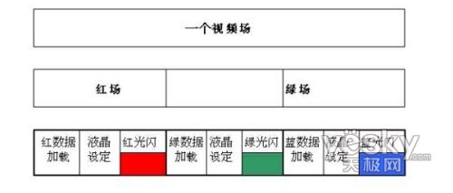 想要直接用RGB的LED來取代濾色片看上去好像很簡單,其實(shí)是不可能的。因?yàn)闉V色片是把每一個(gè)像素都分成三種不同顏色的子像素,如果直接用三種顏色的LED來取代濾色片,就必須采用小到和子像素尺寸一樣大的LED來照射每一個(gè)子像素,才不會(huì)使紅光照到綠光的子像素上。這樣,LED的個(gè)數(shù)就要幾百萬個(gè)之多。為維持像素?cái)?shù)不變,唯一的方法是重復(fù)使用這些像素,也就是采用時(shí)分復(fù)用制。這樣只要順序地發(fā)射出紅光、綠光、藍(lán)光,同時(shí)控制每個(gè)像素的薄膜晶體管(TFT),使其相應(yīng)地按照該像素在這種顏色時(shí)所應(yīng)當(dāng)具有的的強(qiáng)度來開啟液晶光閥。但是,要順序地發(fā)出紅、綠、藍(lán)三種顏色,并能形成一個(gè)彩色的視頻圖象,就必須利用人眼的視覺殘留作用。只要這三種顏色順序重復(fù)的周期小于人眼的視覺殘留時(shí)間,就可以在人們的大腦中形成一個(gè)彩色的圖象。視覺殘留時(shí)間實(shí)際上就是電視的場頻周期,在PAL制中為五十分之一秒。這也就要求在五十分之一秒的時(shí)間內(nèi)必須完成紅、綠、藍(lán)三個(gè)圖象的顯示。因此,這種方式被稱為“場順序”體制,也有人稱之為“色順序”體制。