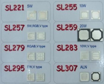 圖3:不同種類陶瓷基板,以瓦數(shù)、內(nèi)部顏色組件作區(qū)分。