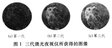 圖1所示是用三代微光夜視儀在同樣條件下分別獲取的圖像,從圖中可明顯看出第三代要優(yōu)于第二代,而第二代又遠遠優(yōu)于第一代。