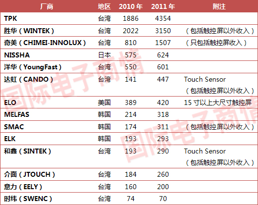 據(jù)水清木華研究中心最新報(bào)告,經(jīng)歷了2010年的爆發(fā)后,觸控屏行業(yè)開始呈現(xiàn)兩極分化。大廠家的收入飛速增加,而小廠家收入微幅增長(zhǎng)甚至衰退。TPK和勝華兩大巨頭占據(jù)了行業(yè)的高端位置,以技術(shù)優(yōu)勢(shì)和客戶優(yōu)勢(shì)牢牢地占據(jù)了市場(chǎng)的大部分份額。雖然觸控屏整體市場(chǎng)在2011年繼續(xù)高速增長(zhǎng),但中小廠家卻很難從中獲益。2010年市場(chǎng)大好,使得不少企業(yè)都擴(kuò)大了產(chǎn)能,這樣不僅是電阻觸控屏出現(xiàn)激烈的殺價(jià)競(jìng)爭(zhēng),電容觸控屏也出現(xiàn)殺價(jià)競(jìng)爭(zhēng)。