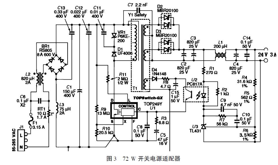 2 基于TOP249Y的72W開(kāi)關(guān)電源適配器設(shè)計(jì)