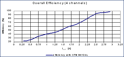 為了全面地分析采用反向降壓轉(zhuǎn)換器拓?fù)鋵?shí)現(xiàn)的數(shù)字電流控制器,圖4對(duì)能效與電流負(fù)載進(jìn)行了對(duì)比分析。在全負(fù)載時(shí),四條通道可實(shí)現(xiàn) 97%的總能效,這可滿足主要的節(jié)能要求。