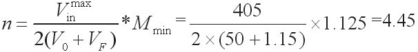 知PFC級(jí)輸出電壓為=405V,經(jīng)查得變壓器輸出端整流二極管FFPF12UP2ODN壓降VF=1.15V,要求輸出電壓V0=50V則變壓器匝數(shù)比n為: