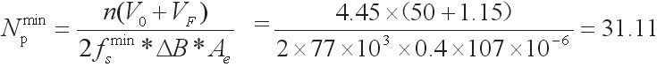 變壓器的磁芯選擇為EER3542(Ae=107mm2)磁芯,從圖7所示的增益曲線得到最小開關(guān)頻率為77kHz,則變壓器的初級(jí)最小線圈數(shù)為:
