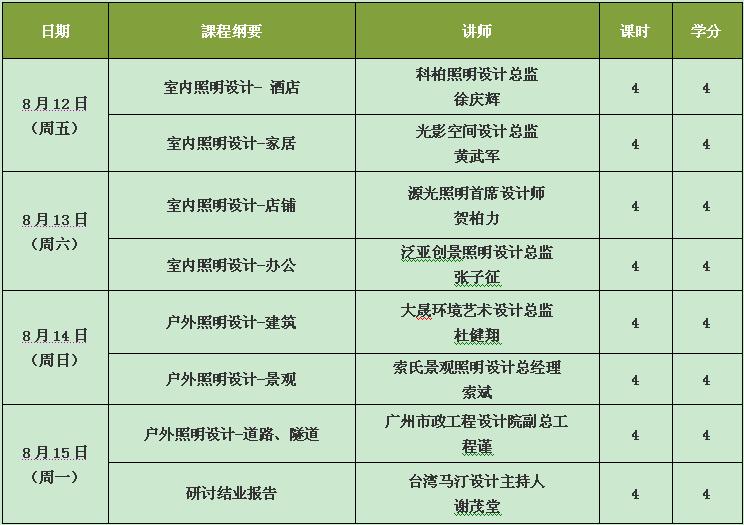 城市建設(shè)的發(fā)展,人居環(huán)境的改善,要求設(shè)計師通過科學(xué)的照明設(shè)計來達(dá)到各種照明環(huán)境的特定要求,廣東光亞照明研究院聯(lián)合CLDA華人照明設(shè)計師聯(lián)合會,繼《照明設(shè)計基礎(chǔ)班》成功舉辦后,于2011年8月12-15日,開展為期四天的《照明設(shè)計專業(yè)培訓(xùn)班》,旨在培養(yǎng)對室內(nèi)外光環(huán)境進(jìn)行綜合設(shè)計的人才,提高照明設(shè)計人員的專業(yè)素質(zhì)。