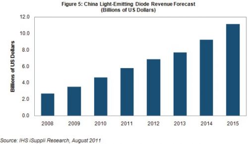 在政府支持下和新應(yīng)用的帶動下,2011年中國LED市場將從去年的47億美元增長到58億美元,上升23%。