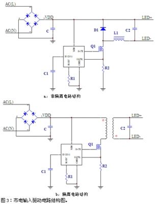 作為一種新型的節(jié)能、環(huán)保的綠色光源產(chǎn)品,LED擁有廣闊的市場前景。市場現(xiàn)階段已經(jīng)出現(xiàn)上千款LED驅(qū)動(dòng)IC。其中我們遇到比較多的是單芯片線路結(jié)構(gòu)(圖1a)。
