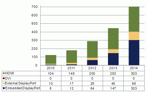 - 移動電腦搭載Embedded DisplayPort界面的比率將在2013年達(dá)到35%。
