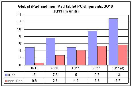 - 蘋(píng)果iPad第三季度出貨量?jī)H為1300萬(wàn)部