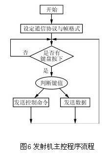 發(fā)射機主控軟件的功能是通過串行口接收上位PC機發(fā)送來的圖像點陣,讀取鍵盤命令,并向編碼器串行發(fā)送操作命令或顯示數(shù)據(jù)。