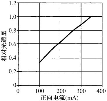 圖1 LED 相對光通量與正向電流關(guān)系[page]