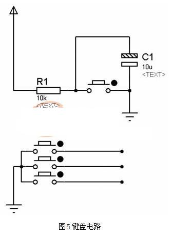 鍵盤是使用比較簡(jiǎn)單的獨(dú)立式鍵盤。編程容易控制,實(shí)現(xiàn)方便,如圖5 所示。