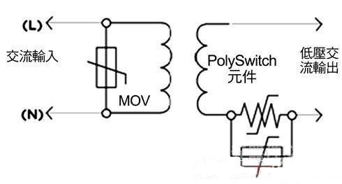 在照明系統(tǒng)中采用第二類功率源可成為降低成本、提高彈性的重要因素之一。固有的有限功率源,如變壓器、電源供應(yīng)器或電池等,可以包含保護(hù)組件,只要不依靠它們限制第二類功率源的輸出即可。非固有型的有限功率源,按照定義,具有一個分立保護(hù)組件,當(dāng)電流和能量輸出達(dá)到預(yù)定值時它會自動中斷輸出,各種電路保護(hù)組件都有助于提供LED照明應(yīng)用第二類功率源的安全操作。圖4表示了一種協(xié)同保護(hù)策略的工作原理,它在交流輸入上采用了一個MOV,在輸出電路分支上采用了一個PolySwitch組件,可以幫助廠商滿足UL 1310第35.1小節(jié)針對開關(guān)和控制裝置的過載試驗要求。
