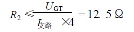 該電路由VT1、R2、R3 組成,VT1采用Motoro2la公司的MCR729210 (UDRM = 800 V,控制極觸發(fā)電壓UGT = 0. 8 V,觸發(fā)電流IGT = 10 mA) .R2 為單向晶閘管提供觸發(fā)偏置電壓,其阻值的選擇至關(guān)重要,如果值太大,則電路中某些不穩(wěn)定因素導(dǎo)致LED中的電流瞬間變大,會(huì)導(dǎo)致晶閘管頻繁觸發(fā),保護(hù)電路頻繁起作用,造成電路工作不正常;如果阻值選的過(guò)小, LED可能在超出其規(guī)格穩(wěn)定值下工作,保護(hù)電路不靈敏,會(huì)造成LED壽命縮短。因要求LED支路電流為16 mA,則: