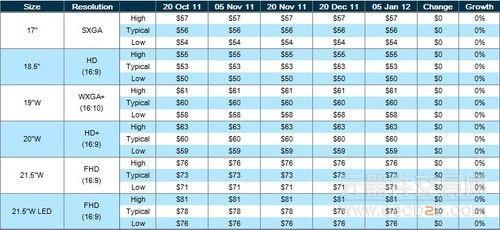DisplaySearch公布的液晶面板報(bào)價(jià)