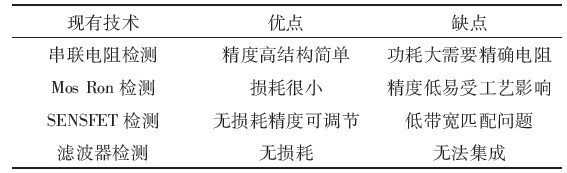 表1中列出了現(xiàn)有的幾種電流檢測技術(shù)并列舉了其優(yōu)缺點(diǎn)。