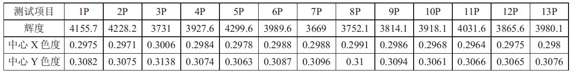 表1 LED 背光源的光學(xué)測(cè)試數(shù)據(jù)