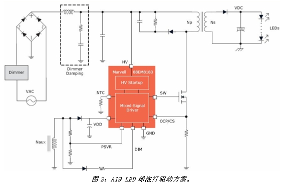 消費(fèi)者用LED節(jié)能燈取代白熾燈等傳統(tǒng)照明解決方案的同時(shí),也希望得到同樣或更好的照明體驗(yàn)。不幸的是,他們常常發(fā)現(xiàn)LED燈在調(diào)光能力上有問(wèn)題,因此覺得LED燈幾乎不能調(diào)光或調(diào)光時(shí)會(huì)閃爍。很多LED燈與家中已安裝的壁式調(diào)光器也不兼容。Marvell最新的88EM8183深度調(diào)光單級(jí)交流/直流LED驅(qū)動(dòng)器IC為OEM廠商和ODM廠商提供了兼容性最廣泛的調(diào)光解決方案,該IC與全球市場(chǎng)上絕大多數(shù)調(diào)光器都兼容,而且提供卓越的光輸出質(zhì)量,可提高消費(fèi)者的滿意度,減少退貨。