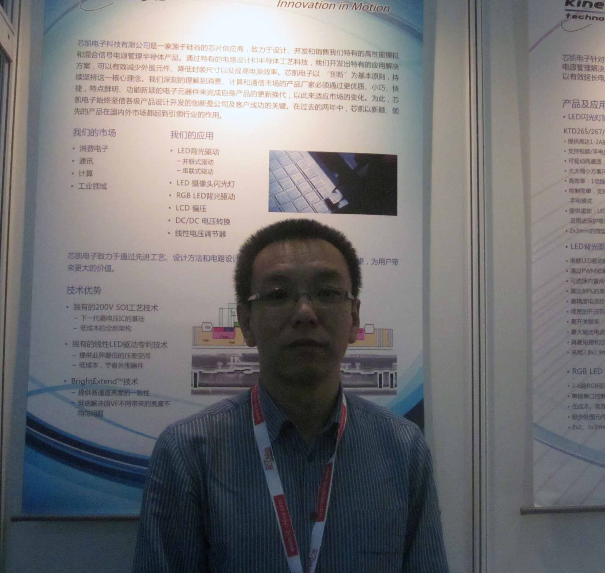 近年來,LED照明行業(yè)高速發(fā)展,世界各國政府的大力推動促使其蓬勃發(fā)展。LED廠商迎來了他們十分重要的發(fā)展機遇,并相應(yīng)制定了自身在LED領(lǐng)域產(chǎn)品的發(fā)展路線和策略。據(jù)芯凱電子科技(上海)有限公司總經(jīng)理劉宏介紹,芯凱十分重視在LED三大應(yīng)用領(lǐng)域的產(chǎn)品(手機LED驅(qū)動、中大型尺寸液晶背光驅(qū)動和LED照明應(yīng)用驅(qū)動),并將視為之他們的領(lǐng)跑消費電子市場的3大制勝武器。