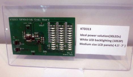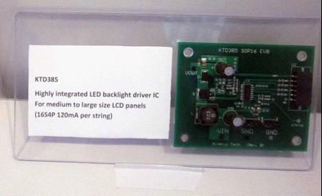 芯凱電子針對中大尺寸顯示屏應(yīng)用領(lǐng)域的產(chǎn)品也是相當(dāng)?shù)呢S富,他們中型尺寸顯示設(shè)備推出了全系列的電源管理解決方案及產(chǎn)品,通過這些優(yōu)化的產(chǎn)品可以有效提高轉(zhuǎn)換效率,減少尺寸,并降低成本。同時,通過工藝和設(shè)計手段的不斷創(chuàng)新,針對LED TV和液晶顯示器的背光驅(qū)動推出了革命性的解決方案,KTD38X系列的產(chǎn)品就是他們將來重點推廣和生產(chǎn)的產(chǎn)品,據(jù)了解芯凱電子還會陸續(xù)推出38X系列更高性能能和高品質(zhì)的應(yīng)用于3D液晶顯示器的背光驅(qū)動產(chǎn)品。