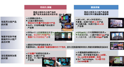2012年,SMD和LG顯示器計劃量產(chǎn)電視用55英寸面板,友達光電(AUO)和奇美電子(CMI)計劃量產(chǎn)智能手機用中小型面板。日本廠商中,日本顯示器正在以2013年量產(chǎn)為目標。索尼和松下也將共同開發(fā)大尺寸面板。隨著各競爭公司紛紛表明涉足,“如果美國蘋果等大客戶有需求,夏普應(yīng)該也不會拒絕”(顯示器相關(guān)分析師)。