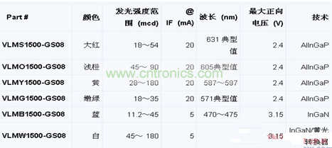 VLMx1500-GS08系列中的藍色和白色LED使用高效InGaN技術(shù),大紅、淺橙、黃色和嫩綠色器件使用最先進的AllnGaP技術(shù),使光輸出提高了3倍。憑借高亮度和小尺寸,VLMx1500-GS08系列LED成為音響和視頻設(shè)備,辦公設(shè)備,液晶屏、開關(guān)和標識,室內(nèi)外照明,以及戶內(nèi)和戶外消息牌中為指示燈和背光提供可靠性能的絕佳之選。