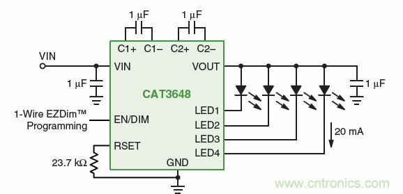 針對手機(jī)等便攜設(shè)備的LCD背光應(yīng)用,安森美半導(dǎo)體提供多款簡單線性白光LED驅(qū)動器。它采用單線式EZDim接口調(diào)光,有32級調(diào)光控制;25 mA固定電流(B版本)或可調(diào)節(jié)電流(A版本)。這些單模LED驅(qū)動器可作為系統(tǒng)級的一部分,用于設(shè)計整合低電壓LED和簡單LED驅(qū)動器的背光電路。